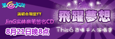 JING:当然,首先是一些小游戏啊。然后其中会有几个抽奖单元,抽到的会有JING的实体唱片哦!另外只要来参加这一次演唱会都能领取演唱会特别版YY一件。(第六大陆DIY服饰)