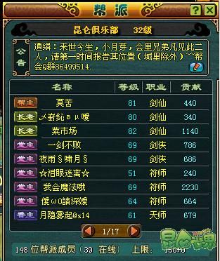 昆仑俱乐部,是S14成立较早的帮派,第一任帮主:大头苍蝇, 后来因为事务忙把帮主传给封心无爱, 封心无爱又传位给现任帮主莫苦, 自己当了一悠闲闲的长老。