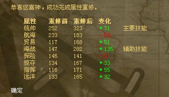 属性重修:玩家可随时在神殿神职人员处选择任意航海家进行属性重修,此功能除需要属性重修道具外还会按照航海家等级收取数额不等的金币,属性重修会随机为航海家重新分配属性点数,不保证重修后航海家的属性情况,请玩家慎重使用。