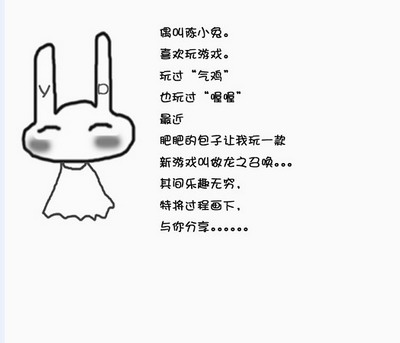 参与活动的玩家不仅擅于将龙之召唤游戏精美的原画拿去跟网络小胖一样PS恶搞,更十分有原创精神!除了把游戏中的好友画成主角,像YD小兔兔就通过涂鸦曝光游戏中十分活跃的高玩“菊花一紧”男的“**”ID由来,MU龙战用很黑的涂鸦描绘了与战友们下副本的故事,隐为天童鞋大战BOSS爆到高级武器还没显摆就被自动卖了,一本正经的系统让人哭笑不得,我们在此感谢这些热心的玩家用鼠标绘制了游戏中的点滴趣味吧!