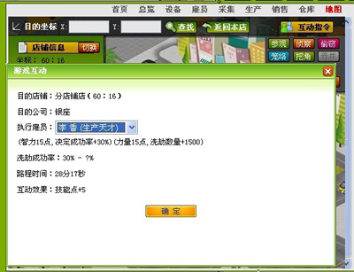 在策略游戏中习惯于当“狼”的玩家这里也有另一条特殊的发展方向:智慧型,智慧是直接影响偷窃、洗劫等互动技能的成功率,提高智慧进行偷窃能让你在初期快速地得到大量产品,偷窃是针对商铺货架上的物品,所以当你想进行“不法行为”的时候要对对区其他店铺中踩点哦。当然如果偷窃失败,你的雇员就有可能被海扁需要休息1-2小时了,而且就算成功了也会得罪周边的商铺变得臭名昭着,是条不归路慎选!
