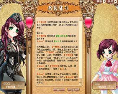 呐呐!~这就是名媛系统的战斗界面啦!纯文字式战斗过程,尽现名媛淑女的高贵优雅,同时也极度契合网页游戏特有气质!