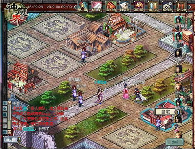 《神魔界》操作同样相当简单,利用鼠标可以实现所有操作,人物走动的速度很也流畅。有一点值得肯定的是在画面的右方会显示在同一地图中的玩家,可以很方便的查看其他玩家的信息。神魔界的地图很大,但是玩家可以用鼠标滑键调节大小,很方便的在世界地图中找到想要的位置。玩家在地图上移动的时候很有意思,骑着马在两城之间穿梭。