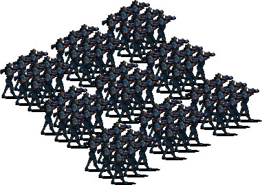 轻机枪步兵整齐的身影。作为装备方阵的排头兵,他们人人身材修长,动作敏捷,是机动力最高的兵种 ;