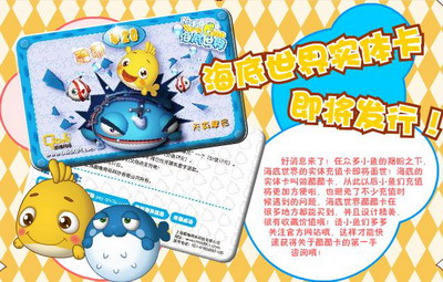 酷酷卡其实近日兴起的青少年网上乐园《海底世界》即将发行的实体充值卡,可以根据不同的面额提供游戏使用货币充值,还未面市就已经受到巨大关注,《海底世界》是由上海酷噜网络研发的,是专为8-15岁青少年设计的网上乐园产品,也是中国最大的虚拟海底世界,拥有众多忠实的青少年玩家,玩家可以化身为神奇的千万种海底生物中的一个,乘翻车鱼穿梭海底,装扮小屋,互动游戏,益智问答,玩转魔法,加入组织,完成任务,爱心养成等。《海底世界》是一个轻娱乐,注重探索、拥有及养成,完全非暴力、弱PK、无战争杀戮仇恨等激烈类游戏内常见的元素。除了非常适合青少年玩家,也吸引相当多的年轻女性以及很多具有童心的成年人。海底世界会给玩家带来这样一个梦幻、卡通、神秘的想象世界,让他们在其中无忧无虑地轻松游玩,身心都能感受到愉悦。