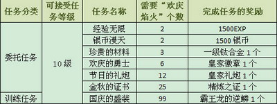 在9月28日~10月13日的活动期间,玩家打战役就可能比平时多获得两种奖励。其一是合成部件必备的一级材料,而另外一种就是“欢庆焰火”了!通过以下任务,大家就能把“欢庆焰火”兑换成各类好东东啦!