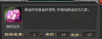 高级仙石:众神遗落在人间的宝物。可以将高级装备打造的更加锋利。