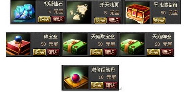 除上述的宝物奖励之外,玩家还将获得如千里传音,开天残页,初级仙石等宝物。此外玩家还能获得大量的礼卷奖励,礼卷可以让玩家在商城中购买自己所中意的道具。