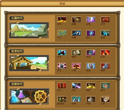 五大时代,多达四十个科技种类,体验人类文明进步的历程。涵盖了内政、外交、军事、英雄各个方面的科技系统,贯穿了整个游戏的主线,丰富而完善的科技系统,使得每一个玩家都可以发展出与众不同的独特文明来。