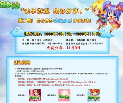 活动名称:“快乐游戏 精彩分享”昆仑世界QQ签名分享活动(第二期)