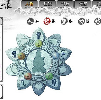 选择人物,经脉后,会进入道莲界面,并开始提升各经脉级别。