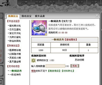 然后进入天珍堂,和炼宝童子对话,学习炼化武器的方法,然后打开“炼器-炼制-炼制武器页面”,炼化出一把属于你的绝世宝剑。