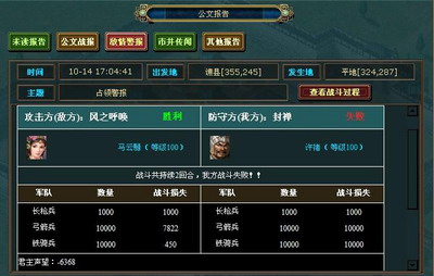话说许诸上次偷袭战胜了关羽,得意非凡,天天酒池肉林,纸醉金迷,一身装备也不强化,慢慢落伍了。但是呢……最近,君主决定要在豫州开拓**界,不得已领命带大军前去。但是许诸不愧是虎痴之名,勇猛非凡,一路杀奔豫州,沿途战倒了豫州多名守将。