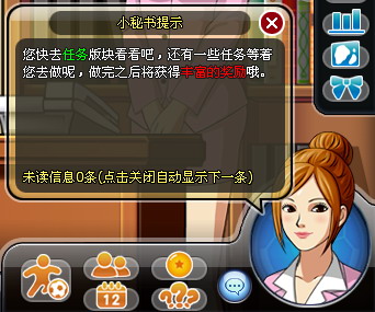 刚刚注册成为新手后,你可以跟随小秘书,去熟悉整个游戏的所有场地和各个按钮的功能,她会为你做非常详细的介绍,带你完成整个新手教程。