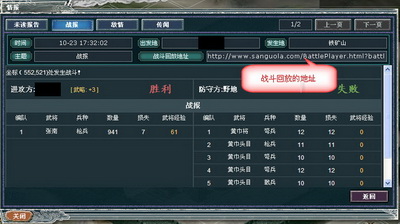 战斗回放地址:http://img.sanguola.com/BattlePlayer.html?battleID=a1b4e634-0c67-47f5-a779-37e3f8bab6af