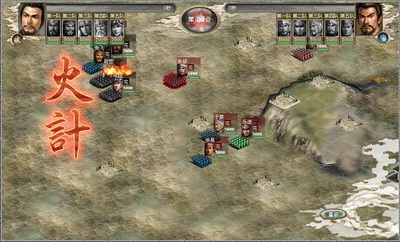 战斗伊始,刘备军就赶到空地上设置了一个军乐台,以便在战斗中可以回复技力,不想被张郃识破,一把火烧毁了军乐台。