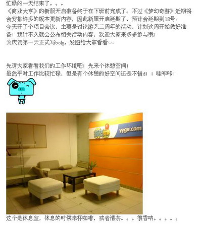 在Hebe的笔下,一个游戏从承接到开服,再到维护,不再是枯燥无聊的流程,而是充满着一件产品在手中诞生的喜悦。玩家看到的游艺世界,不再是一个干巴巴的运营商名词,而是一个充满温馨趣味的办公室。里面生活着一群和玩家一样喜怒哀乐,吃喝拉撒的年轻人。
