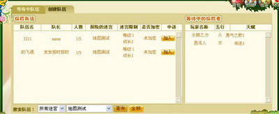 点选天梯魔塔地区就可以进入组队搜索界面,如上图,此时如果点击某只队伍后面的加入按钮可以加入该队伍,如下图。另外在该界面还可以在左下角的位置进行队伍的搜索,你可以方便的搜索到你想去副本的队伍。