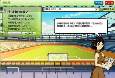 同时,让我们把目光转移到《疯狂足球》,同样,这里的主场也是场场爆满,根据俱乐部建设规则,足球经理人等级越高,便能建设更高级别的主球场,这样,主球场升级的同时,足球经理人得到的收益不仅是大量的金钱和经验,更主要是主球场的提升,能给你带来更多的观众,更多的场均球迷数。