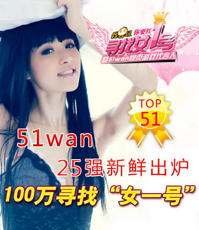 在经过漫长残酷的一个月海选后,10月28日“寻找女一号”海选阶段正式落幕,10月29日—11月2日进入51强的美女经过激烈的才艺比拼于11月3日正式产生25强选手,谁将成为51wan(我要玩)2010年贺岁巨作《开心西游》的游戏代言人?谁又将集万千宠爱于一身?成为明日之星呢?让我们拭目以待吧。