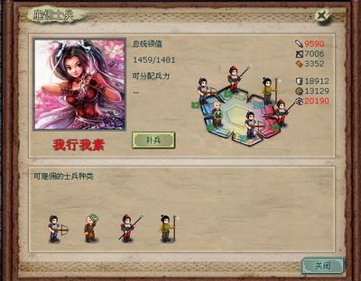 佣兵营是除了自封地中屯兵营以外玩家获得兵源的主要处所。目前佣兵营中提供了农民、**兵、弓弩手、守护僧四个兵种供玩家招募,玩家只需花费少量的金钱就可以招募到充足的士兵。