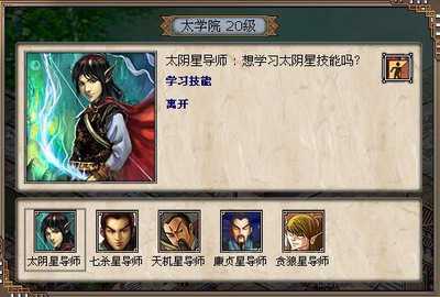 太学院是学习技能的场所,五个职业的技能导师都在这儿等着各路英雄前来拜师学艺,可以是主英雄学习技能,也可以为你的某一个副英雄学习技能。掌握了职业必杀技能后,对英雄能力的提升是成几何成长的哦。