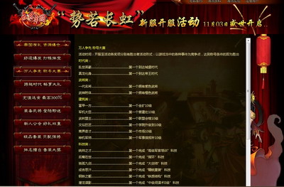 为了让玩家更好的享受游戏的乐趣,为了服务器质量更好,为了玩家更加喜爱我们的武林帝国,我们已于11月3号11:00将推出第十二服“势若长虹”,快来这里与各路英雄豪杰一比高下。