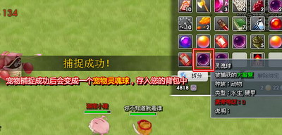 最后宠物捕捉成功后会变成一个宠物灵魂球,存入您的背包中。接下来你就要开始做宠物鉴定了,因为灵魂球需要宠物鉴定书鉴定后才能成为您的战斗伙伴。
