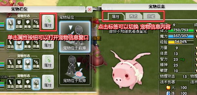 点击菜单宠物按钮或使用快捷键[P]呼出宠物界面