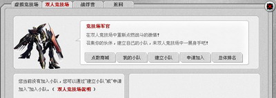 “战争不是个人的事”阿纳海姆公司开发了双人机甲的虚拟竞技场系统。整个赛季周期为11天,战胜名次靠前的对手,将获得更加靠前的名次。同时奖励相应的竞技场点数。竞技场点数可以在竞技场商城内购买平直更高的芯片、药剂、装备等物品。