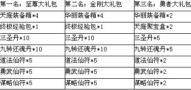 新服神仙冲级赛:截止至规定时间,排名前三的神仙获得至尊装备套装