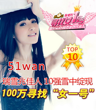 由新娱兄弟51wan(我要玩)联合影视圈举办的首届“寻找女一号”暨51wan网页游戏代言人选秀大赛,已如火如荼的进入到PK阶段最后一个环节——10强总决赛。总决赛将于2009年11月14日全方位开启,届时电视、网络、报纸全方位报道,以及各大影视明星(杨亚星)、著名音乐人(熊天平夫妇)、资深导演(田野)、制片公司、游戏公司等重头评委参加,形成一条龙立体式报道,当你风光无限站于人前的时候,你想不出名都很难。