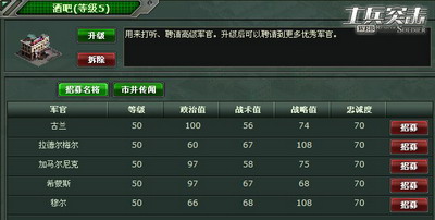 【市井传闻】你可以在酒吧打听到各类优秀的历史名将,从而获取该名将更详细的资料。酒吧等级越高,资料传得越快。
