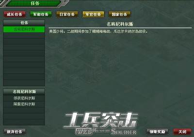 全新一代网页战争游戏《WEB士兵突击》点指专服内侧将于11月25日15时正式火爆开启。点击注册新用户,填写正确的邮箱注册成功后,系统将向您的邮箱发放新手卡,里面包含新兵卡礼包内含:(价值RMB35元)建设召集令*1、中型电台包*1、迁徙令*1、食品流水线*1、石料流水线*1、金属流水线*1、石油流水线*1、礼卷 1000。现在为大家介绍一下游戏中名将招募的技巧。