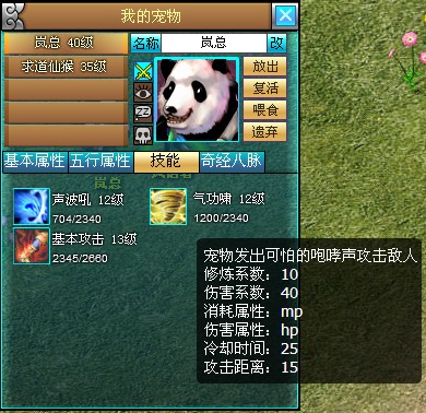 想知道功夫熊猫如何来的玩家看清楚了哦,功夫熊猫是《仙域》的珍稀宠物,玩家只能从商城购买大熊猫蛋,孵化之后便有几率获得,换言之只有人品好的玩家才能拥有这么拉风的宠物。功夫熊猫不仅拉风,还和电影上一样能打,是玩家得力的战斗助手。作为珍稀宠物,功夫熊猫战斗力惊人,除了超猛的基本攻击外,还有恐怖的声波吼和气功啸两种技能绝招。看气功啸的技能描述,俨然是大家熟悉的狮子吼,打怪的时候威力十足。