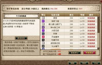 2.每个竞技场中,玩家只能够去主动挑战比自己排名高1—10位的其他玩家,同时也只能够挑战比自己低10个等级的玩家。