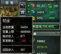 铂金来源有三个,一是对攻击目标采取占领模式,可以打劫到铂金,二是去贸易市场用资源换取 ,三是依靠自身税收获得,这里主要介绍下税收如何合理调整,达到利益最大化。