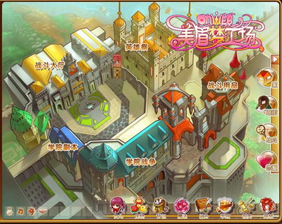 进入《美眉梦工场》主界面,即可点击“战斗”进行相应操作。通过与既有界面战斗入口的对比,新界面除了极大限度的整合以前略显分散的功能按钮和系统入口之外,更添加了极富创意又新颖可爱的超Q小图标!