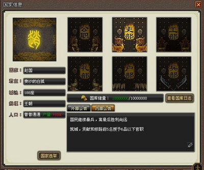 兵部——国家规模随着国家城池数增多而上升,特殊兵种的训练需要达到一定的国家规模。