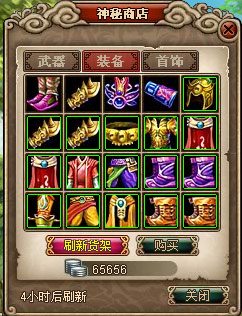 2.神秘商店每4小时系统自动刷新一次商店里的商品,玩家也可以花费元宝随时刷新商店里的商品。下一次刷新会在玩家手动刷新后的4小时后进行。