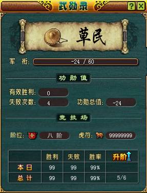 所有等级达到30级的玩家,都能参与竞技场PK。不论胜负,都可以获得经验值奖励,另有竞技场特殊货币“虎符”奖励,虎符可以在指定NPC处换取PVP新装备、新的晶魄和内丹等惊喜物品!连续获胜的一方,更可提高自己的“阶位”,即竞技场等级(阶位共分为30阶,玩家的等级也同时决定了自己能到达的阶位上限)。