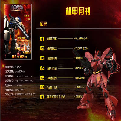 《机甲战争》月刊——由奋斗在1线的战地记者、以及宇宙出版社全力打造,加上广大机师的支持,已新颖的形式展现在各位机师面前。为了方便各位机师在紧张的战时能够放松心情,特别准备了电子版的机甲月刊。丰富的内容,绚烂的画面,以及玩家记者们自己的文章,全方位的为您呈现一个色彩丰富的机甲世界!