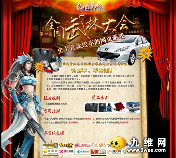 此次,九维网重磅出击,特设本次大会巅峰赛最高冠军奖:价值10万元的东风标致307轿车一辆!网页游戏史上覆盖范围最广、参与人数最多的竞技活动,最丰厚超值最吸引人的活动奖励掀起顶级赛事狂潮!让我们一起见证这激情万分的时刻吧!