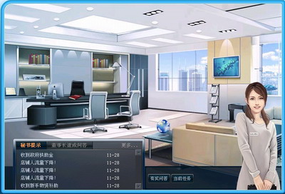 同样的模拟经营游戏《商业大亨》,就没这个办公室了,只有文字,加头像,让人感觉这只是一个操作系统。看到那个小秘书的头像就挺烦的。而且小秘里没我喜欢的类型。我喜欢清纯的。