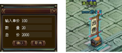 当然了,如果您要淘装备,也可以到别的玩家的摆摊上筛选。合适了就买,免却和人讨价还价的繁琐过程,轻松方便。点击摊位即可查看对方出手的物品,选中一件物品,再点选确定就可以购买,购买的物品会直接放入买家的背包。