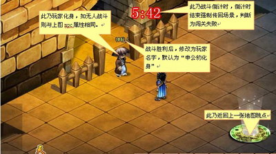 过关后进入下一关。这一关的NPC可以跳过也可以挑战,如果挑战成功后,此NPC形象会自动变更为第一个打过此NPC的玩家形象和ID名称。挑战成功与否的判定同样为五分钟的限制。此后通关挑战都为如此。