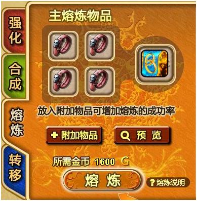 注:金币购买的手镯和戒指不可以进行熔炼!