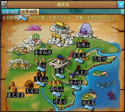 学会腾云驾雾以后,您就可以体验孙大圣的感觉了。您可以点开人物技能,使用“腾云驾雾”技能,然后在出来地图上点选要飞去的地方就OK。您也可以按快捷键(M)打开地图,选择“世界地图”后点击要飞去的地方,便能传送过去。腾云驾雾让您自由地在各大地图中任意传送,无论是跑腿、刷怪、做任务还是下副本,不用再靠坐骑或双腿跑了,节省了大量时间,非常方便。
