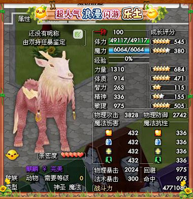 至于智力型宠物的王者夜魔王一家子,怕是不用小编我多说了,有图有真相,转生后的属性图说明一切啊!智力值已经上了四位数,华丽的外形配上超强的属性,绝对是法师们最爱的神兽!