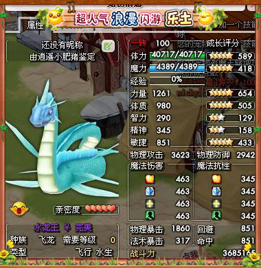 至于我们的水龙王,自然不会因为有麒麟的存在而埋没了它的光彩,与麒麟所差无几的属性成长让它的神兽地位依旧无法撼动!